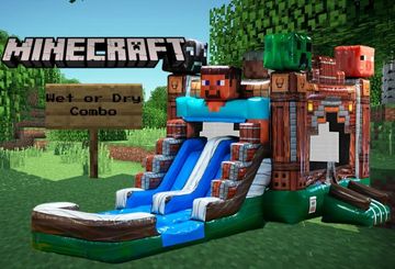 NEW ARRIVAL! Power up your party with our Minecraft Combo — the ultimate gamer-themed inflatable for endless fun! Measuring 27 feet long, 13 feet wide, and 14 feet tall, this combo has a roomy bounce area, a dual slide, and the option of a refreshing pool or dry stopper. Perfect for gamers of all ages, it’s a hit at birthdays, school events, and backyard celebrations. Make sure you have a space of 29 feet by 16 feet to set up this epic combo safely.