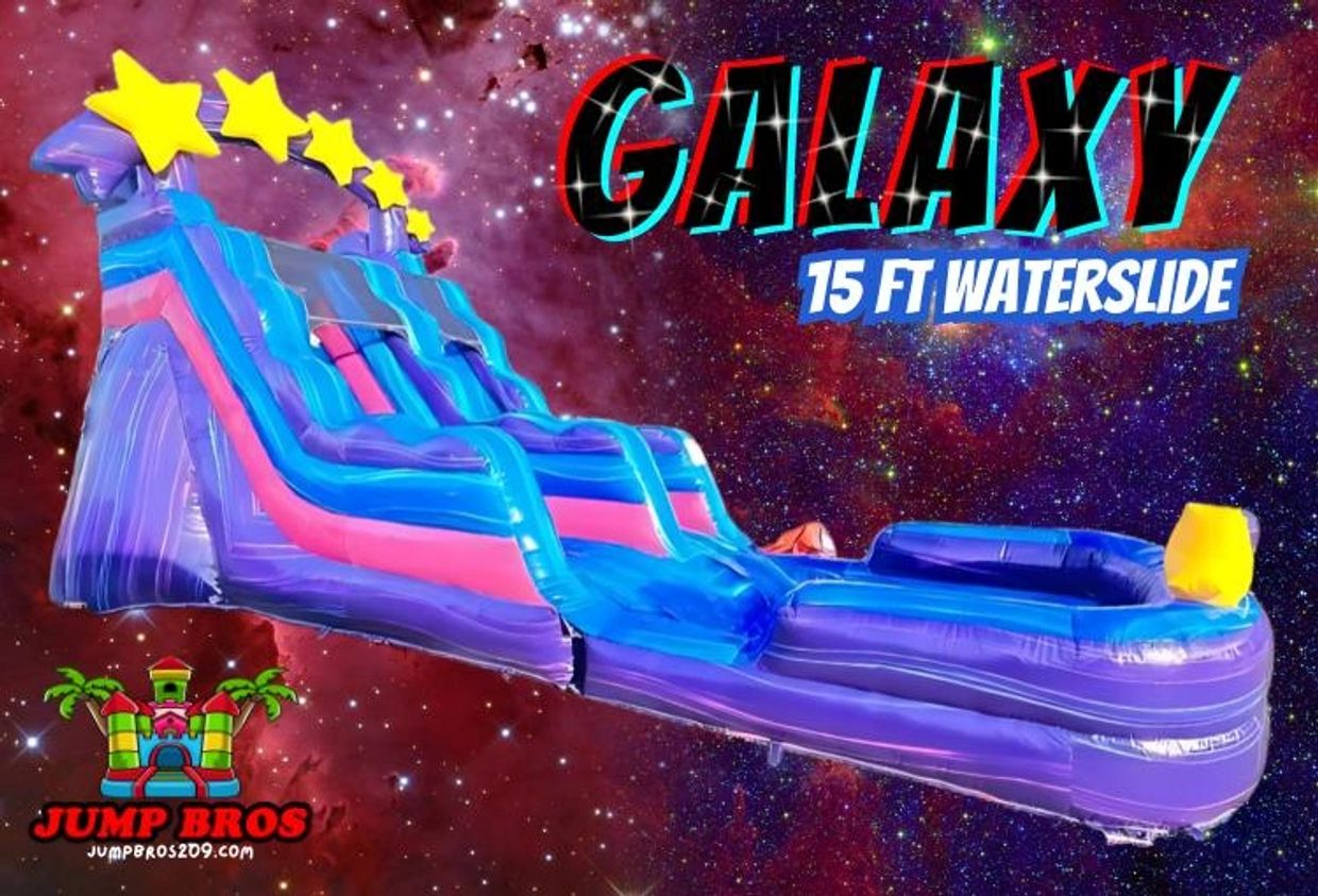 Explore the cosmos with the Galaxy water slide! This 28-foot long, 14-foot wide slide stands 15 feet tall and features stunning star-themed designs with galaxy-like colors. Perfect for older children and teens, the Galaxy offers a huge pool for hours of splash-filled fun. Make your event stellar with this exciting addition!