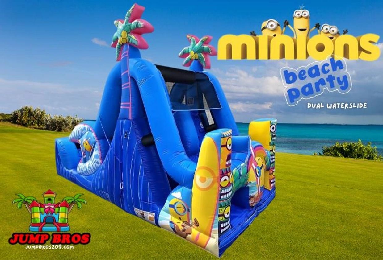 Minions Beach Party Dual Water Slide is one of our larger Water slide units! Being that it is a Water Slide, its footprint is much larger than a traditional 13' x 13' Bounce house.