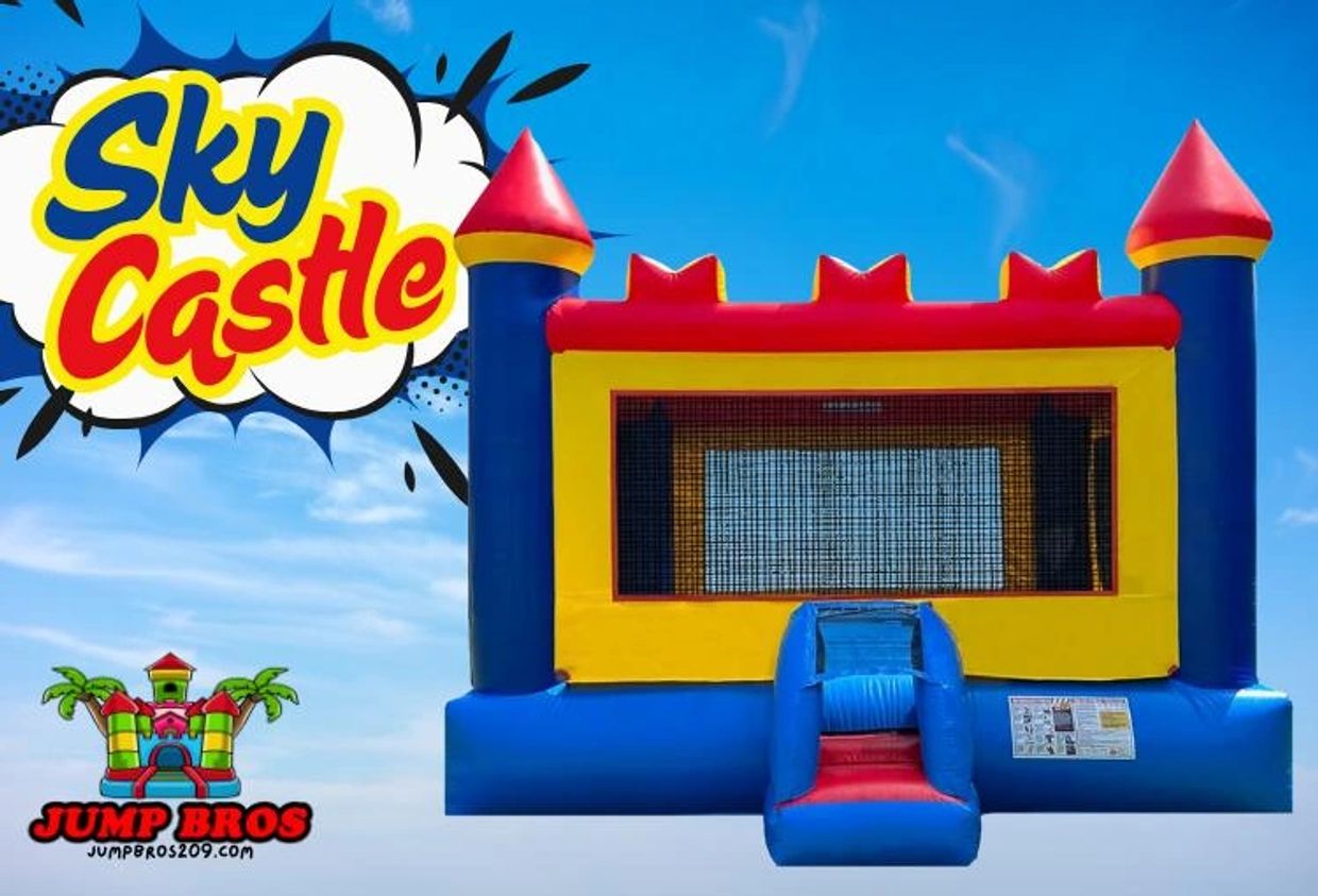Say hello to the Sky Castle! Immerse your little ones in a world of wonder with our Sky Castle bounce house, a nostalgic design that combines the magic of a castle with the thrill of bouncing excitement. Measuring 13' x 13', it's the perfect playground for all of their adventures! The unique net roof lets imaginations soar as kids bounce beneath the open sky, creating an open-air experience filled with joy. The vibrant red, blue, and yellow hues add a splash of nostalgia to every jump, making it a visual delight. Make your event truly magical - reserve the Sky Castle now for a day of whimsical bouncing and enchanting memories!